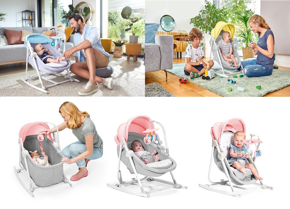 KINDERKRAFT Unimo Up to produkt 5 w 1 i przeznaczony jest dla dzieci od początku ich narodzin, gdzie może pełnić funkcję leżaczka, bujaczka, łóżeczka lub kołyski. W późniejszej fazie rozwoju dziecka produkt można przekształcić w krzesełko, które dostarczy twojemu dziecku więcej wrażeń oraz zapewni bezpieczną zabawę. Z produktu mogą korzystać dzieci o wadze do 18 kg.