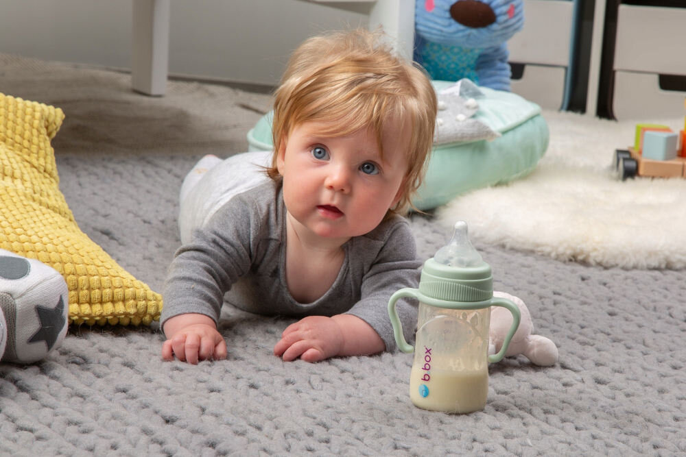 Butelka do karmienia B.BOX wykonana z tworzywa klasy medycznej odpornego na intensywne użytkowanie, mycie ręczne i w zmywarkach, a także na sterylizowanie. Posiada ergonomiczny kształt ułatwiający chwyt i zapobiegający staczaniu się odłożonej butelki oraz praktyczną podziałkę.