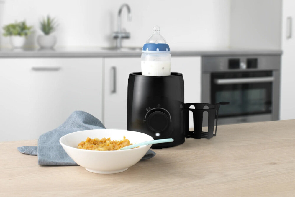 Urządzenie jest kompatybilne z butelkami różnych rozmiarów i kształtów, co daje elastyczność w wyborze akcesoriów dla dziecka. Bez problemu obsłuży zarówno butelki ze smoczkiem, jak i standardowe słoiczki.