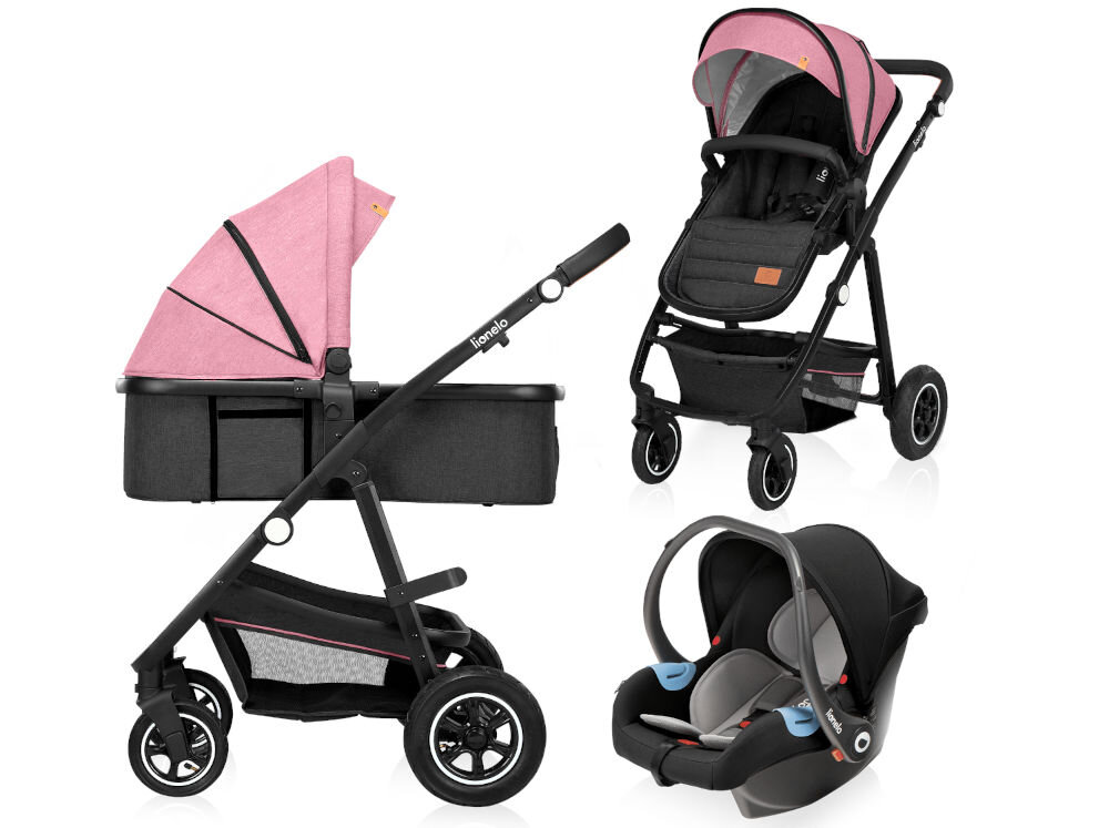 Wózek dziecięcy LIONELO Amber 3w1 Pink Rose Czarno-różowy