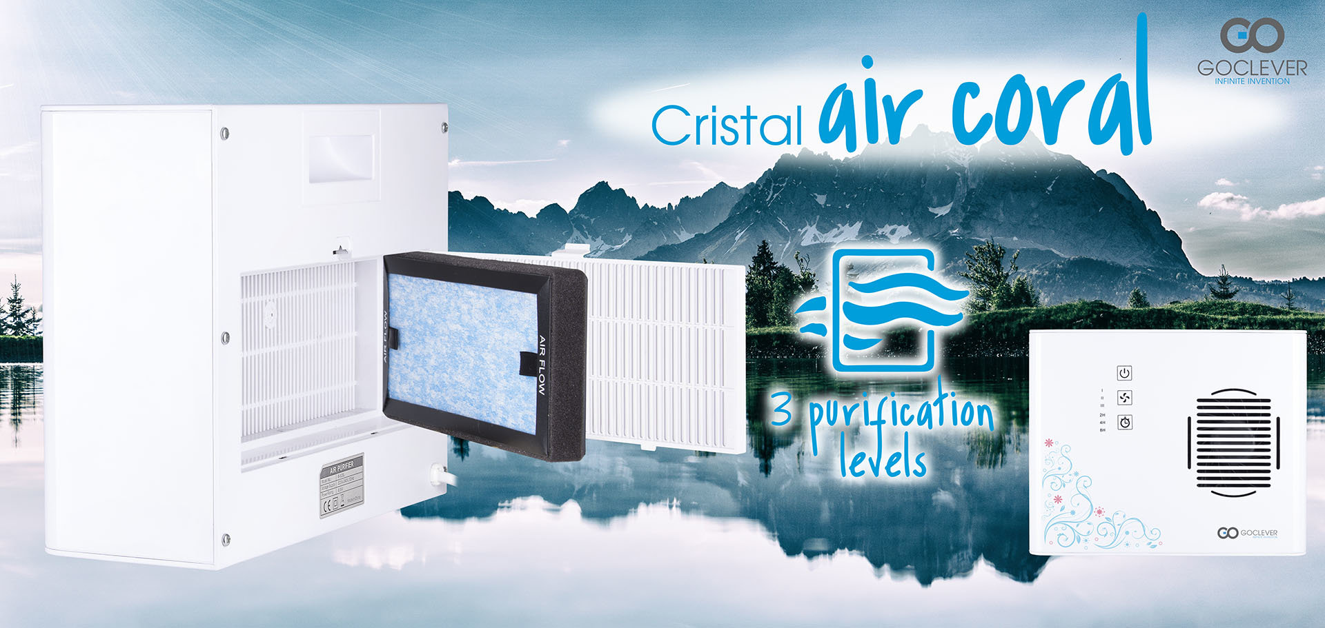 Zastosowany w oczyszczaczu powietrza Cristal Air Coral filtr jest połączeniem trzech najważniejszych filtrów HEPA, węglowego i włókninowego (makrocząsteczkowego). HEPA zatrzymuje małe cząsteczki zanieczyszczeń z powietrza, co wpływa korzystnie na zdrowie i samopoczucie użytkownika. Regularne wymienianie filtrów zapewnia świeże i czyste powietrze przez cały rok.