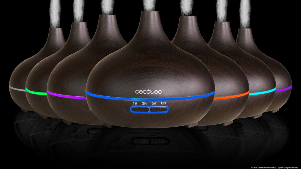 Zbiornik na wodę o pojemności 300 ml wystarcza na nawet 6 godzin ciągłej pracy. Aromatyzer Cecotec Pure Aroma 300 można ustawiać ręcznie bądź automatycznie, w zależności od preferencji. Jego ogromną zaletą jest również to, że posiada siedem wariantów kolorystycznych podświetlenia, dzięki czemu może być wykorzystywany również jako lampka nocna (np. w pokoju dziecka).