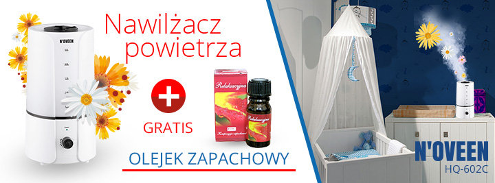 Ten produkt nie jest już dostepny w naszym sklepie Znajdź podobneNawilżacz ultradźwiękowy NOVEEN HQ-602C Biały + olejek relaksacyjny