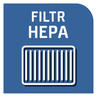 Filtr HEPA zatrzymuje mikrocząsteczki o wielkości zaledwie 0,3 mikrometra, w tym dym tytoniowy, pyłki, kurz, wychwytując aż 99% zanieczyszczeń powietrza. Należy go wymienić, gdy zaświeci się wskaźnik.