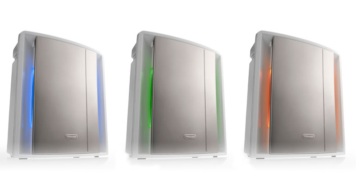 Zanieczyszczenia powietrza są w większości niewidoczne. Nowoczesny AC 150 De’Longhi posiada czujnik, wykrywający różnorakie substancje, gazy i związki organiczne, które mogą być niebezpieczne dla zdrowia. Analizuje je, sygnalizuje użytkownikowi poprzez wyświetlenie odpowiedniego koloru na obudowie urządzenia i sam dobiera tryb pracy odpowiedni dla aktualnego stanu powietrza. Kolor pomarańczowy oznacza powietrze złej jakości, w tym wypadku oczyszczacz rozpoczyna pracę z maksymalną wydajnością. Kolor zielony sygnalizuje powietrze o zadowalającej jakości, a wentylator pracuje ze średnią prędkością. Natomiast kolor niebieski oznacza powietrze dobrej jakości, które jest wolne od zanieczyszczeń wychwytywanych przez oczyszczacz, co pozwala wentylatorowi pracować z minimalną prędkością.