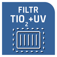 Filtr fotokatalityczny z TiO2 z lampą UV utlenia i rozbija strukturę związków organicznych i niebezpiecznych organizmów. Rezultatem jest działanie antybakteryjne i polepszona jakość powietrza.