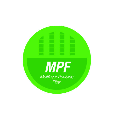 | MPF (Mulitlayer Purifying Filter) zasysane powietrze, przechodząc przez bardzo gęstą strukturę kolejnych warstw filtrujących, oczyszczane jest stopniowo z większych zanieczyszczeń, pyłów zawieszonych PM 2,5 i PM 10, toksycznych gazów VOC, różnego typu alergenów, dymu papierosowego i nieprzyjemnych zapachów. Równocześnie powietrze może zostać poddane procesowi jonizacji, który neutralizuje szkodliwe jony dodatnie i zastępuje je leczniczymi jonami ujemnym — jonami życia. Proces ten, dzięki zmianie układu ładunków elektrycznych, wspomaga oczyszczanie powietrza. | ![]() |