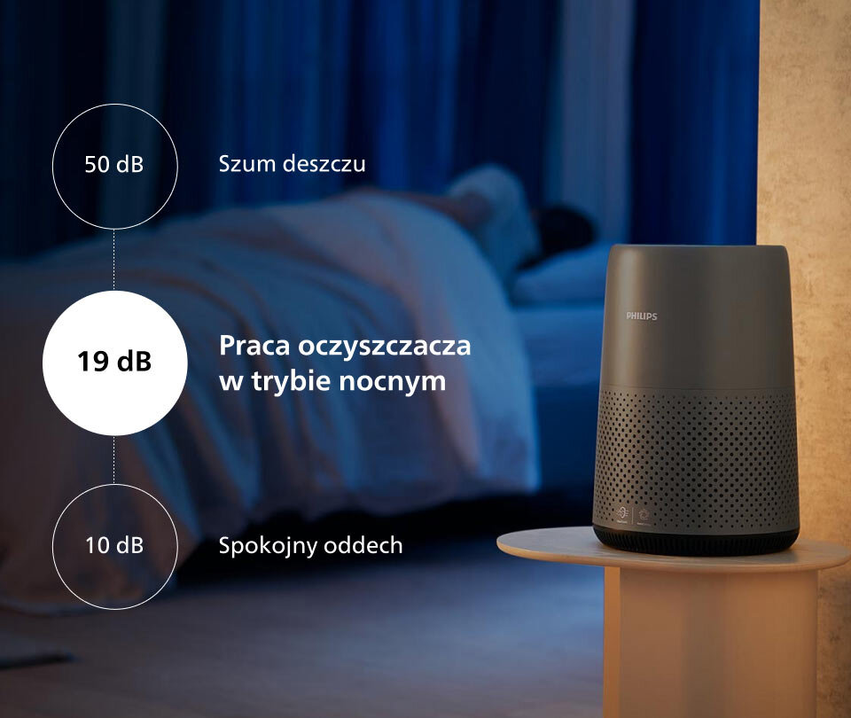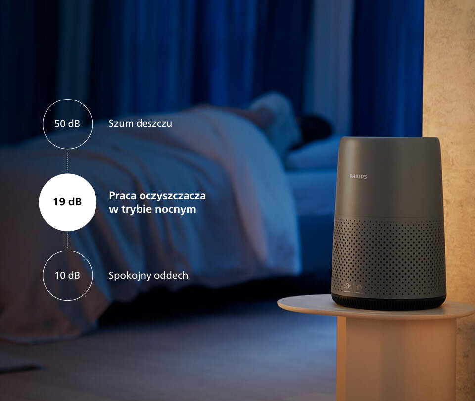 Teraz możesz spać spokojnie, nie martwiąc się o zanieczyszczenie powietrza. W trybie snu oczyszczacz emituje ledwie słyszalny szmer
