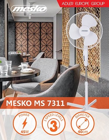 Wentylator stojący posiada duży wiatrak o średnicy 40 cm, co zwiększa powierzchnię jednoczesnego nadmuchu a trzy prędkości pozwalają zadecydować o jego sile. |