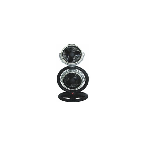 Podwójny wentylator w kolorze czarnym, o mocy 50 W, zasilany sieciowo, z funkcją oscylacji z zakresem obrotu 90 stopni oraz z 3 prędkościami pracy.