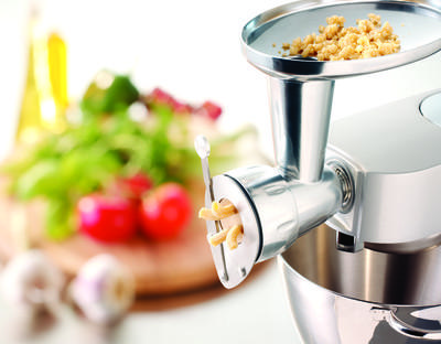 Smak makaronu domowej roboty jest nieporównywalny z tym, jaki charakteryzuje produkty kupowane w sklepach. Nawet te najwyższej jakości mu nie dorównują. Jeśli wydaje Ci się, że jego przygotowanie jest czasochłonne i skomplikowane, wypróbuj profesjonalną przystawkę do wyrobu makaronu, którą możesz zamontować do swojego robota planetarnego. Makaron przygotowany samodzielnie możesz dodatkowo wzbogacić ulubionymi ziołami, przyprawami czy pastą pomidorową albo zabarwić naturalnym atramentem bądź szpinakiem. Ta niezwykła przystawka otwiera przed Tobą wiele kulinarnych możliwości.