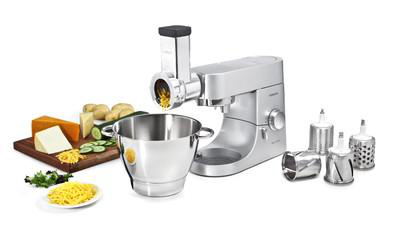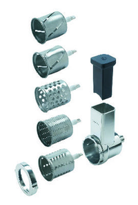 Siłą tego praktycznego, przystosowanego do pracy ciągłej urządzenia jest wszechstronność. Dzięki niemu uzyskasz plejadę kształtów, a wystarczy tylko je zamontować, dodać wybrane składniki i podstawić misę robota lub inne naczynie. Przystawka została wyposażona w pięć bębnów, które ułatwią przygotowanie dań, wymagających krojenia i szatkowania składników. Jest perfekcyjna w tarciu serów i warzyw do dań oraz czekolady do deserów.