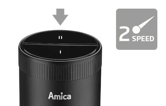 Chcesz dostosować prędkość urządzenia do swoich potrzeb? Od dziś będzie to tylko kwestią ustawienia w Twoim blenderze odpowiednich parametrów! Dzięki zastosowaniu w urządzeniach Amica 2-stopniowej regulacji prędkości, z łatwością dostosujesz szybkość pracy do swoich wymagań i produktów, których aktualnie używasz.