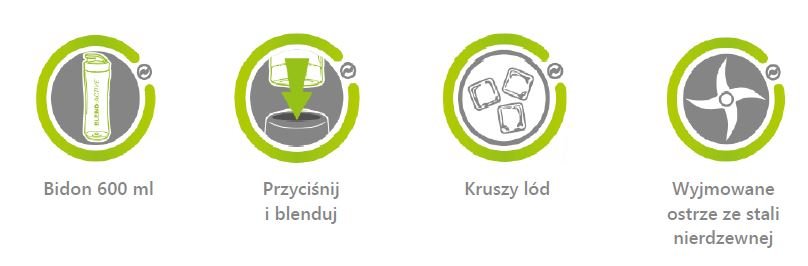 | Blenduj z Blend-Active i rozkoszuj się smakiem świeżych soków, koktajli, smoothies, shake'ów. Ten zestaw zawiera blender Bland-Active z bidonem 600 ml i dodatkowym bidonem o takiej samej pojemości. Zdrowe, sycące napoje dla Ciebie i Twoich bliskich w kilka chwil. | |