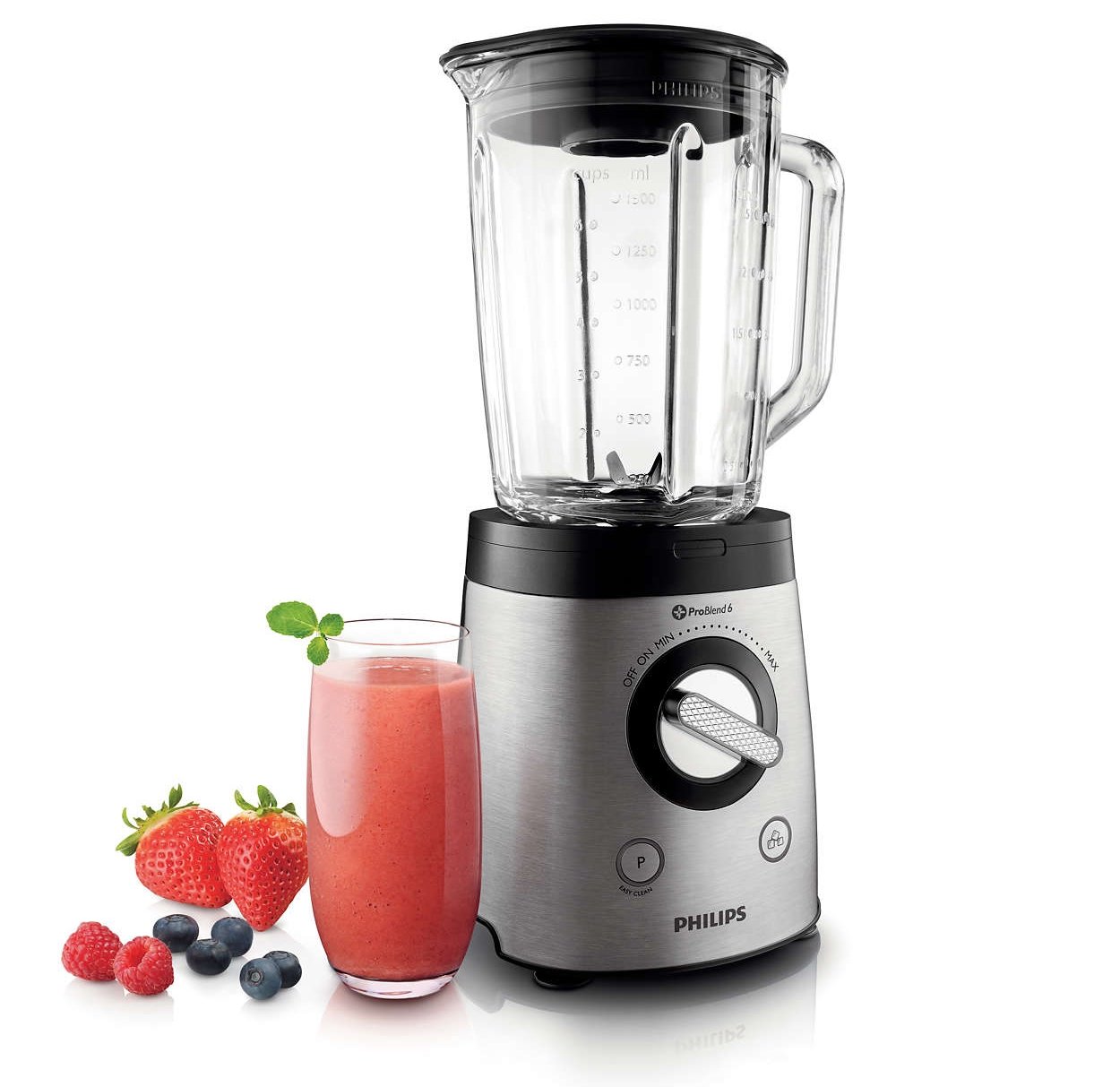 | Najlepsze miksowanie, bez grudek Technologia ProBlend 6 zapewniająca o 50% dokładniejsze rozdrobnienie* -800 W -Szklany dzbanek o pojemności 2 l -ProBlend 6 |