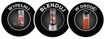 | Funkcje: | Kielich z miarką, Butelka sportowa, Blender do smoothie, Możliwość mycia w zmywarce |