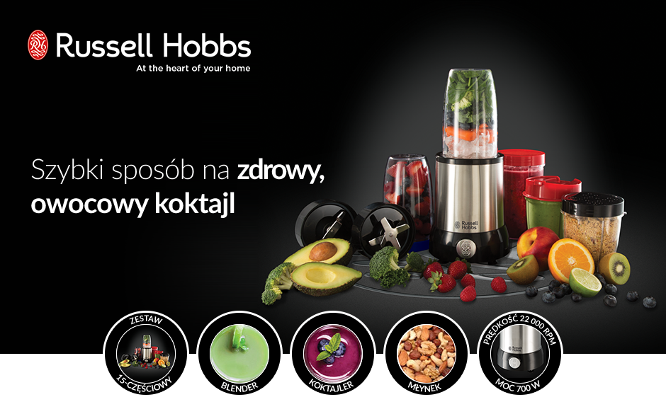 - Blender kielichowy RUSSELL HOBBS Nutri Boost 23180-56 (Sportowy) + 4 bidony w komplecie
