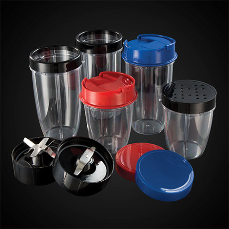 Zestaw zawiera 5 pojemników (3 duże i 2 małe) oraz pasujące do nich pokrywki dające wiele różnych możliwości zastosowania. Wśród nich znajduje się m.in. pokrywa do ścierania sera, czekolady i przypraw, a także wieko podróżne z ustnikiem. Dzięki temu, że cały zestaw można wykorzystać na wiele sposobów, jest on niezbędny w każdej dbającej o zdrowe odżywianie rodzinie.