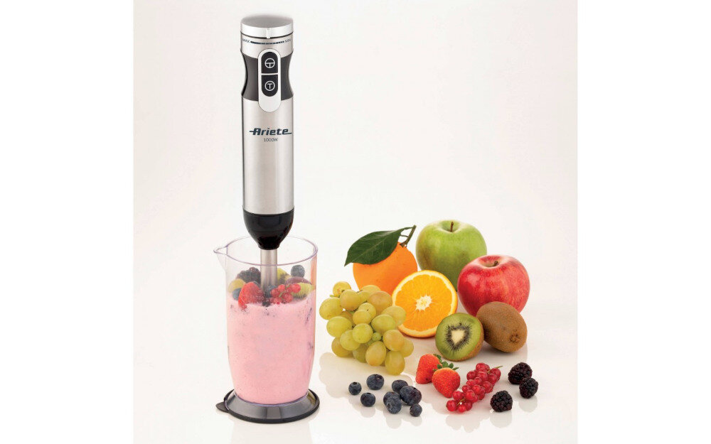 ARIETE wie, że blender to niezbędne urządzenie w każdej kuchni. Zdajemy sobie również sprawę z tego, że Twoja kuchnia nie jest z gumy, a Ty potrzebujesz dodatkowych akcesoriów, by codzienne gotowanie stało się szybkie i wygodne. Z radością oddajemy w Twoje ręce nowy blender 7w1 o mocy aż 1000W, który spełni oczekiwania nawet najbardziej wymagającego gospodarza. Końcówki: do blendowania i ubijania, przystawka do puree, rozdrabniacz, kruszarka do lodu, a także dwie wymienne tarcze do przecierania i szatkowania warzyw zmieniają zwykły blender w wielofunkcyjny robot kuchenny o kompaktowym rozmiarze. Perfekcyjne wykonanie, przemyślane elementy i duża moc urządzenia pozwolą Ci wspiąć się na kulinarny szczyt swoich możliwości. Z blenderem 7w1 Ariete praca w kuchni będzie nie tylko przyjemna, ale i szybka, a zaoszczędzony czas możesz poświęcić na wyszukiwanie nowych przepisów, którymi zaskoczysz swoich gości!