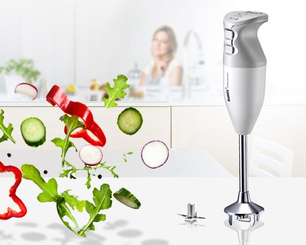 Prędkość Blendery Bamix® posiadają dwie prędkości obrotu ostrzy, podczas rozdrabniania twardych produktów oraz dużych ilości zalecamy pracę na II-giej prędkości. Do płynnych składników w małych ilościach a także do przygotowania produktów o lekkiej i puszystej konsystencji np. bita śmietana, majonez należy używać prędkości numer I. |