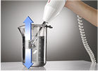 Ubijanie Umieść nasadkę miksującą blendera Bamix® pionowo na spodzie pojemnika do miksowania. Po kilku sekundach pracy nachyl końcówkę pod lekkim kątem i wykonuj powolne ruchy góra-dół. Następnie umieść ponownie końcówkę na spodzie pojemnika i ubijaj produkt do uzyskania odpowiedniej konsystencji i sztywności. |