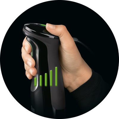 | Technologia Smart Speed: jeden przycisk – wiele prędkości Blendery MQ 7 Braun posiadają prosty i intuicyjny system regulacji prędkości - Smart Speed. Ta innowacyjna, pierwsza na świecie technologia zapewnia pełną kontrolę nad pracą urządzenia. Sterowanie nim jest niezwykle proste - wystarczy mocniej nacisnąć przycisk, aby blender przyspieszył. Im mocniej naciskasz, tym większe obroty uzyskujesz. Możesz intuicyjnie wybierać wszystkie prędkości, decydując o stopniu rozdrobnienia składników, bez przerywania blendowania i obaw o zachlapanie kuchni czy ubrań. |