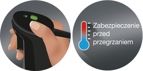 | Przycisk bezpieczeństwa Blender jest nie tylko mocny i wytrzymały, ale też całkowicie bezpieczny w użytkowaniu. Został wyposażony w zabezpieczenie przed przegrzaniem oraz innowacyjny przycisk bezpieczeństwa, umiejscowiony na górze uchwytu. Dopiero po jego odblokowaniu urządzenie jest gotowe do pracy. Przycisk stanowi skuteczną ochronę przed niepożądanym użyciem blendera przez dzieci. |