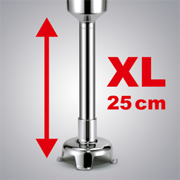 Dzięki długiemu ramieniu - 25 cm oraz długiemu przewodowi - 2 m, możesz miskować w każdym zakamarku kuchni. |