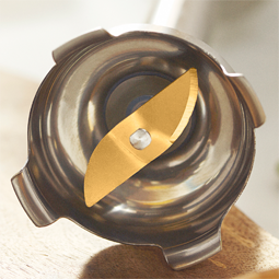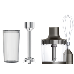 Duże tytanowe ostrza w połączeniu z udoskonalonym kształtem końcówki miksującej umożliwiają wydajne, nie wymagające wysiłku i zapewniające doskonałe efekty rozdrabnianie i mieszanie składników. |