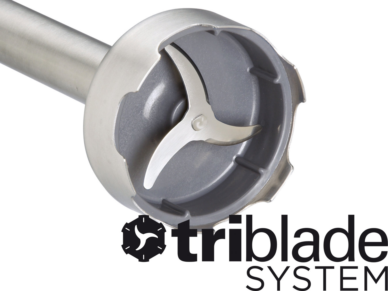 | Moc trzech ostrzy Triblade to nowoczesny blender, w którym zastosowano trzy ostrza miksujące o długości 2 cm. Każde z nich ukształtowano w taki sposób, aby tworzyło oddzielną powierzchnię cięcia. Stopa urządzenia została wyposażona w niewielkie ząbki oraz 6 specjalnych wypustek na brzegach, aby zredukować efekt chlapania, w wyniku działania siły odśrodkowej. Płyn, uderzając w wypustki, zmienia kierunek i ponownie trafia na ostrza, zwiększając efektywność ich pracy. |