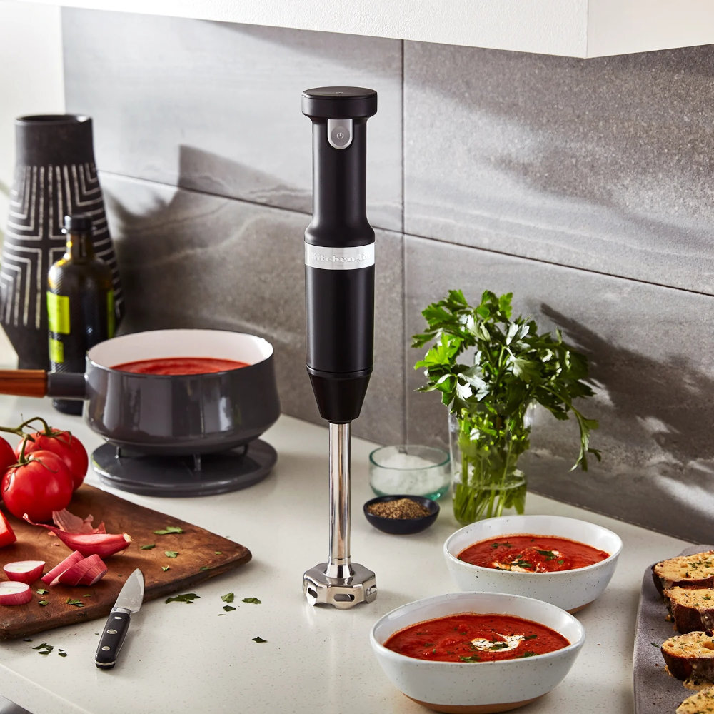 Uwolnij się od przewodu. Bez niego masz teraz całą moc jakiej oczekujesz. Z bezprzewodowym blenderem ręcznym firmy KitchenAid udasz się tam, gdzie ci będzie wygodnie pracować. Zaprojektowany z mocnym akumulatorem litowo-jonowym, nowy bezprzewodowy blender ręczny KitchenAid zapewnia optymalny czas pracy i wydajność, znaną z tradycyjnych urządzeń zasilanych z gniazdka. Dzięki temu możesz teraz wybrać gdzie, co i jak będziesz gotować. Zmiksuje 25 talerzy zupy przy pełnym naładowaniu baterii.
