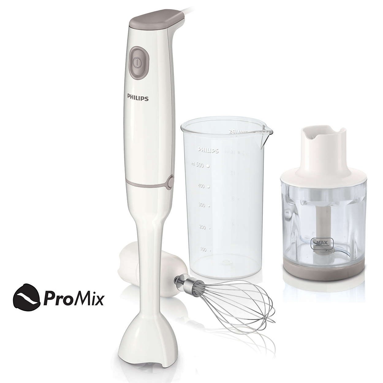 | Łatwe przygotowywanie zdrowego, domowego jedzenia! Doskonałe miksowanie zup, ubijanie śmietany i nie tylko -550 W, plastikowa końcówka -ProMix -Dzbanek 0,5 l, rozdrabniacz, trzepaczka -1 prędkość |