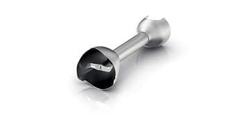 Nóż blendera z utwardzanej stali szlachetnej Blender ręczny firmy Philips jest wyposażony w nóż z utwardzanej stali szlachetnej. Kształt noża zoptymalizowano, aby zapewnić najlepsze efekty miksowania z wykorzystaniem trójkątnej końcówki ProMix. Nóż jest przystosowany do kontaktu z żywnością i wykazuje odporność na korozję. |
