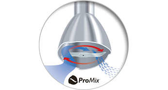 Optymalny przepływ jedzenia i wydajność miksowania Opracowana wspólnie z naukowcami z prestiżowego Uniwersytetu w Stuttgarcie technologia Philips ProMix to unikatowa zaawansowana technologia, która wykorzystuje kształt trójkąta, aby zapewnić optymalny przepływ jedzenia i maksymalną wydajność w celu szybszego i dokładniejszego mieszania składników. |