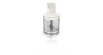 Rozdrabniacz do siekania ziół, orzechów, sera, czekolady i cebuli Niewielki rozdrabniacz blendera ręcznego firmy Philips umożliwia siekanie ziół, orzechów, sera, czekolady i cebuli. |