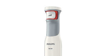 | Wydajny blender ręczny z silnikiem o mocy 700 W zapewnia doskonałe rezlutaty miksowania Wyposażony w wydajny i niezawodny silnik o mocy 700 W blender ręczny firmy Philips może zmiksować niemal każdy składnik i zapewnia doskonałe rezultaty. Dzięki odpowiedniej mocy silnika blender ręczny może obsługiwać wiele różnych akcesoriów. |