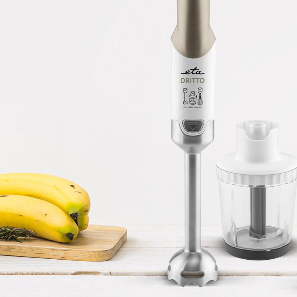 Blender ETA Dritto został wyposażony w mocny silnik 800W, który w połączeniu z ergonomicznym uchwytem, wykonanym z materiału typu „soft touch” zapewnia wygodną obsługę.