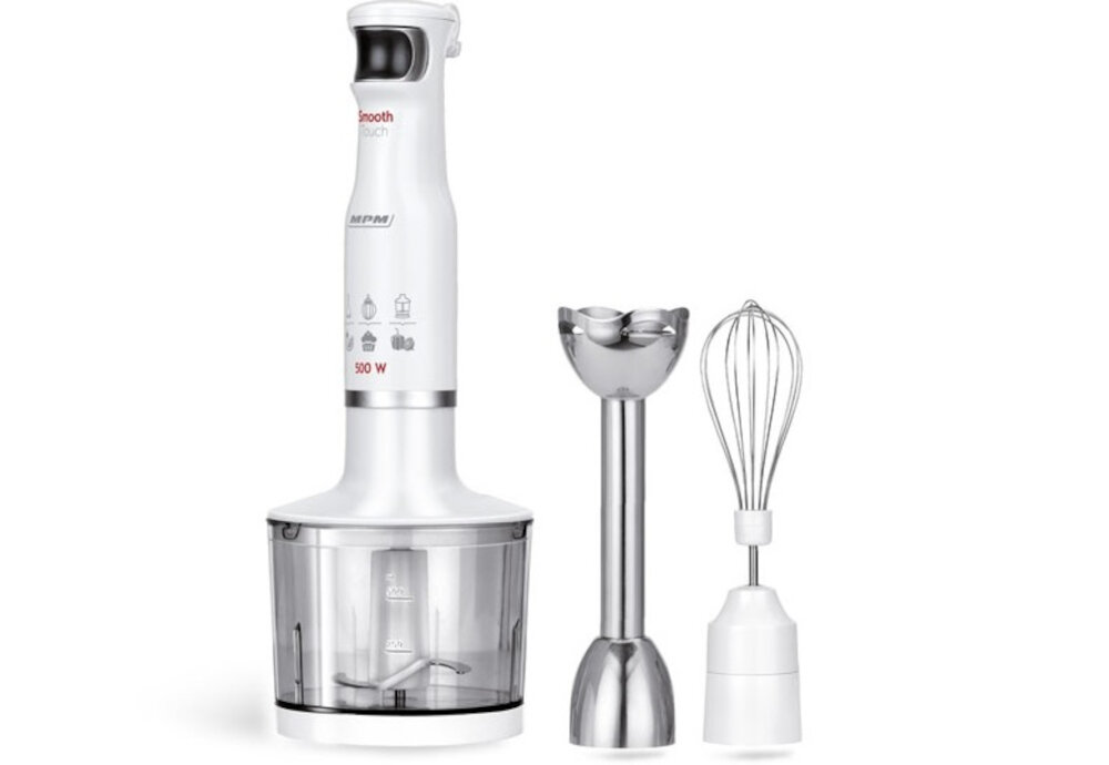 Blender MBL-28 został wyposażony w szereg przydatnych i funkcjonalnych rozwiązań. W zestawie z blenderem ręcznym znajdziesz: