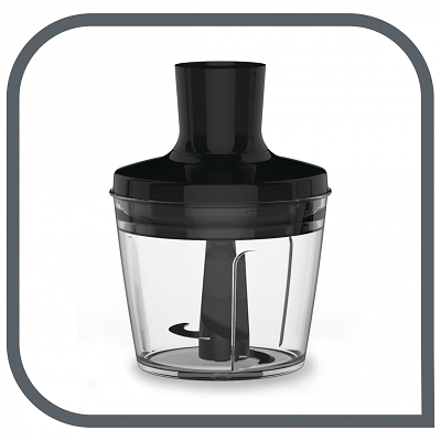 | Szatkowanie bez limitu Siekaj dużą ilość składników na raz dzięki rozdrabniaczowi o pojemności całkowitej 500 ml. |  |