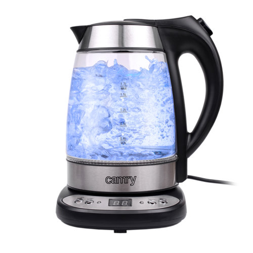 ![]() Czajnik z regulacją temperatury Camry CR 1242 Posiada bardzo solidny, pewny i chłodny uchwyt, dobrze się go trzyma. Wygodny i dobrze działający przycisk otwierania pokrywki. Szeroko otwierająca się pokrywka ułatwia nalewanie wody i czyszczenie. Ścianki czajnika wykonane są z hartowanego szkła żaroodpornego, odpornego na zmiany temperatury i wstrząsy. wyraźny wskaźnik poziomu wody od 0,6 do 1,7 litra, pozwala ugotować tylko tyle wody ile potrzeba, dzięki temu zużywa mniej prądu i wody. |