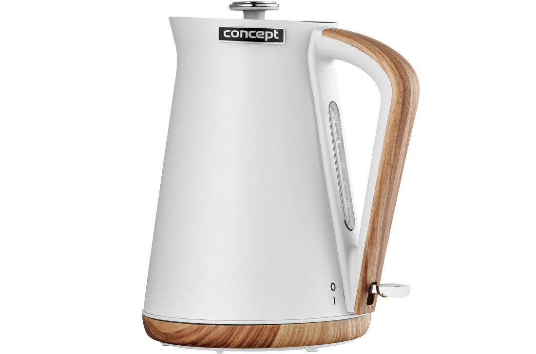 Korpus czajnika jest wykonany ze stali nierdzewnej o podwyższonej odporności na wysoką temperaturę. Z zewnątrz urządzenie ma elegancki, biały kolor z elementami drewnopodobnymi. Stylistyka utrzymana jest w klimacie nordyckim. Czajnik CONCEPT Nordic RK3312 ma pojemność wynoszącą 1,7 litrów, co pozwala na szybkie podgrzanie wody nawet na 7 szklanek napoju. Aby woda była podgrzana szybko, grzałka ma moc 1850 - 2200 W. Do uruchomienia służy przycisk znajdujący się poniżej rączki i wskaźnika poziomu wody.