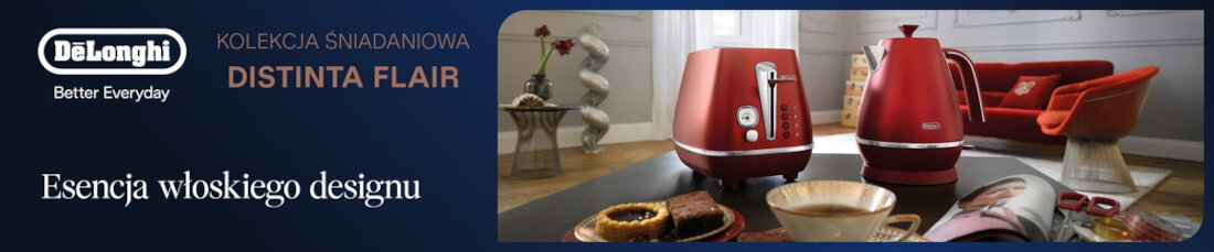 Kolekcja De'Longhi Distinta Flair KBI2001.R łączy w sobie klasykę elegancji, ekskluzywny i stylowy design z włoską precyzją. Czajnik wykonany jest z matowego metalicznego materiału ze stali nierdzewnej z chromowanymi detalami. Kolekcja śniadaniowa De'Longhi Distinta Flair została stworzona z myślą o tych, którzy cenią sobie funkcjonalność i doskonały włoski styl.