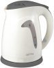 Bezprzewodowy czajnik elektryczny o pojemności 1.7 l, mocy 2200 W, z ukrytą grzałką i obrotową podstawą. Model ten posiada zatrzaskiwaną pokrywę, wskaźnik poziomu wody oraz grzałkę ze stali nierdzewnej.