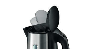 Filtr antywapienny zapewniający czystą wodę Wyjmowany filtr antywapienny sprawia, że woda wlewana do filiżanki jest czysta. |