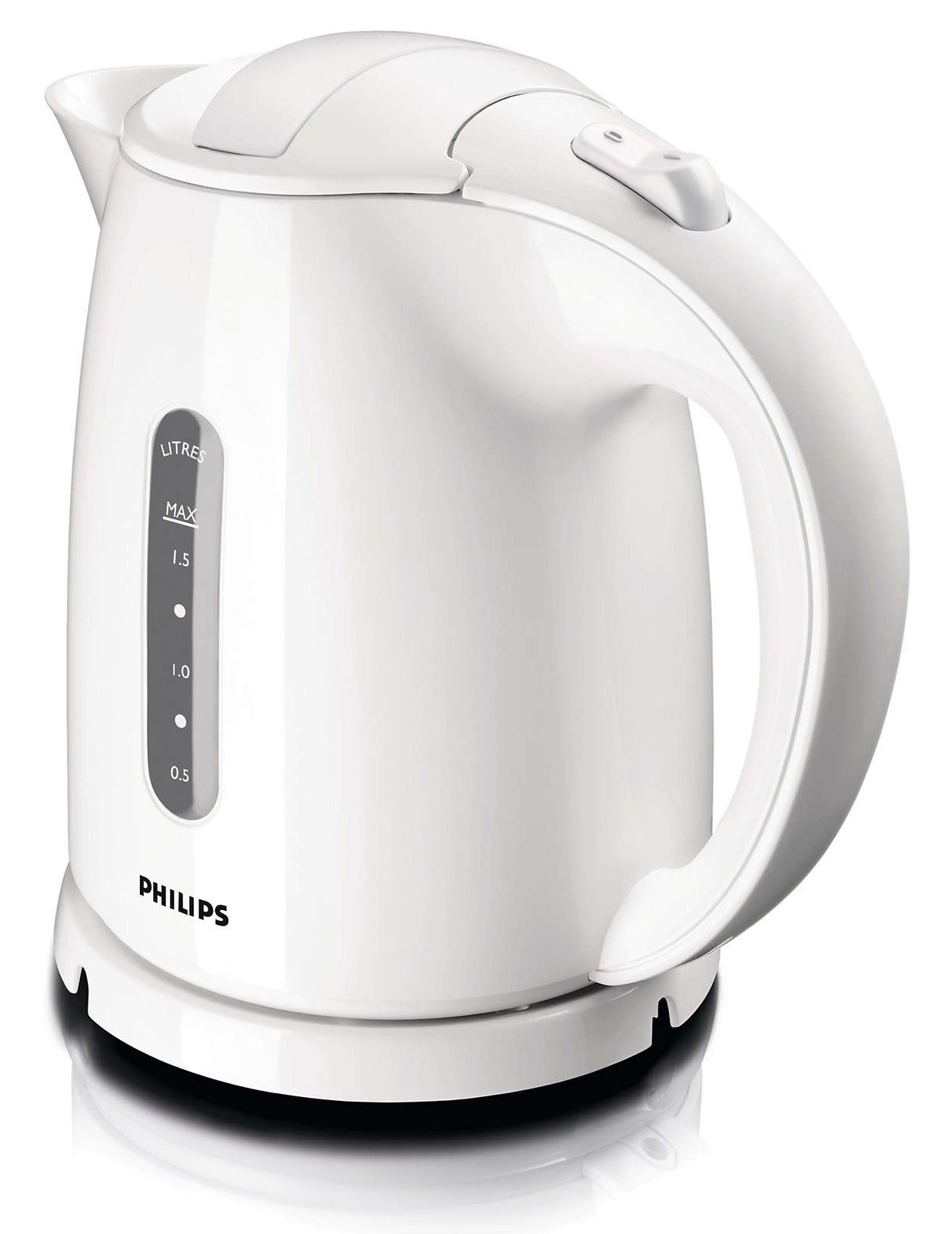 | Szybkie i proste gotowanie! Wydajny czajnik z prostym w czyszczeniu elementem grzejnym -1,5 l, 2400 W -Wskaźnik poziomu wody -Biały -Zdejmowana pokrywka |