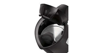 Łatwe napełnianie i przykrywanie Czajnik można napełnić po otwarciu pokrywki lub przez dziobek. |