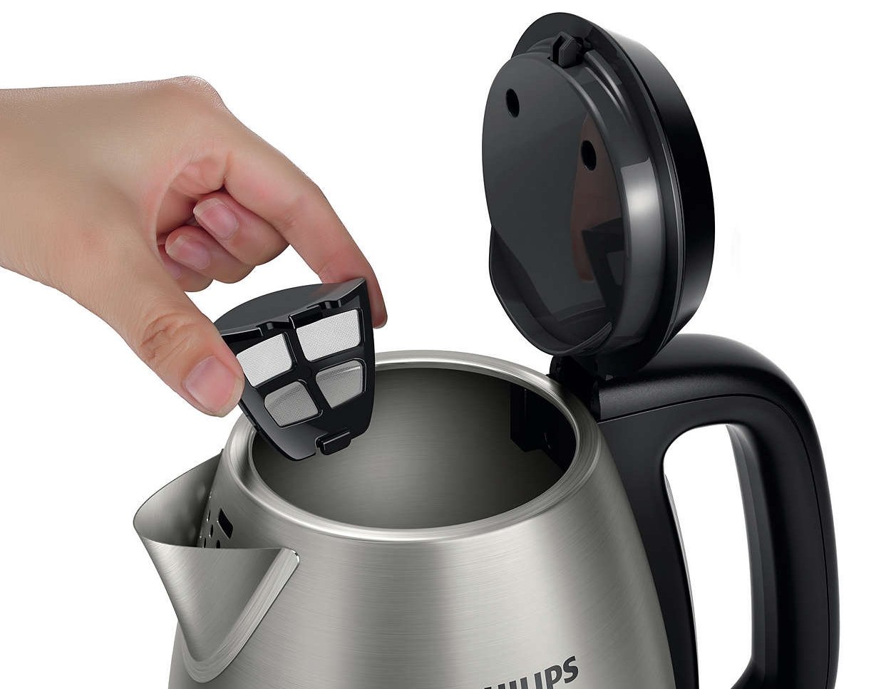 Filtr antywapienny zapewniający czystą wodę Wyjmowany filtr antywapienny sprawia, że woda wlewana do filiżanki jest czysta. |