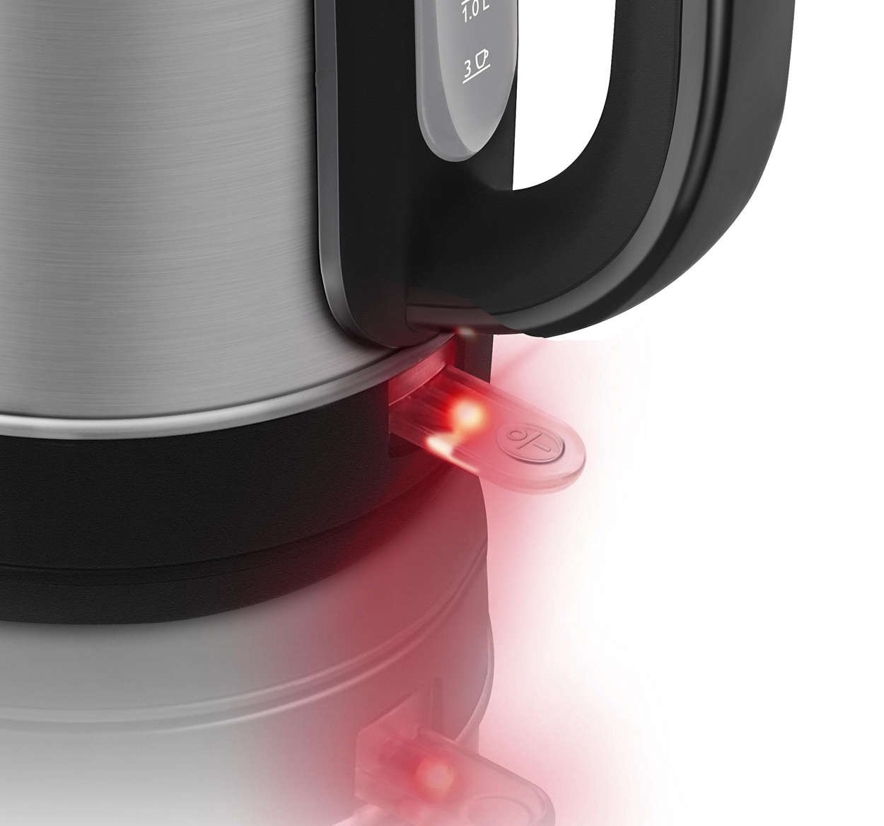 | Zapalony wskaźnik informuje, że czajnik jest włączony Stylowe światełko wbudowane w wyłącznik wskazuje, że czajnik jest włączony. |