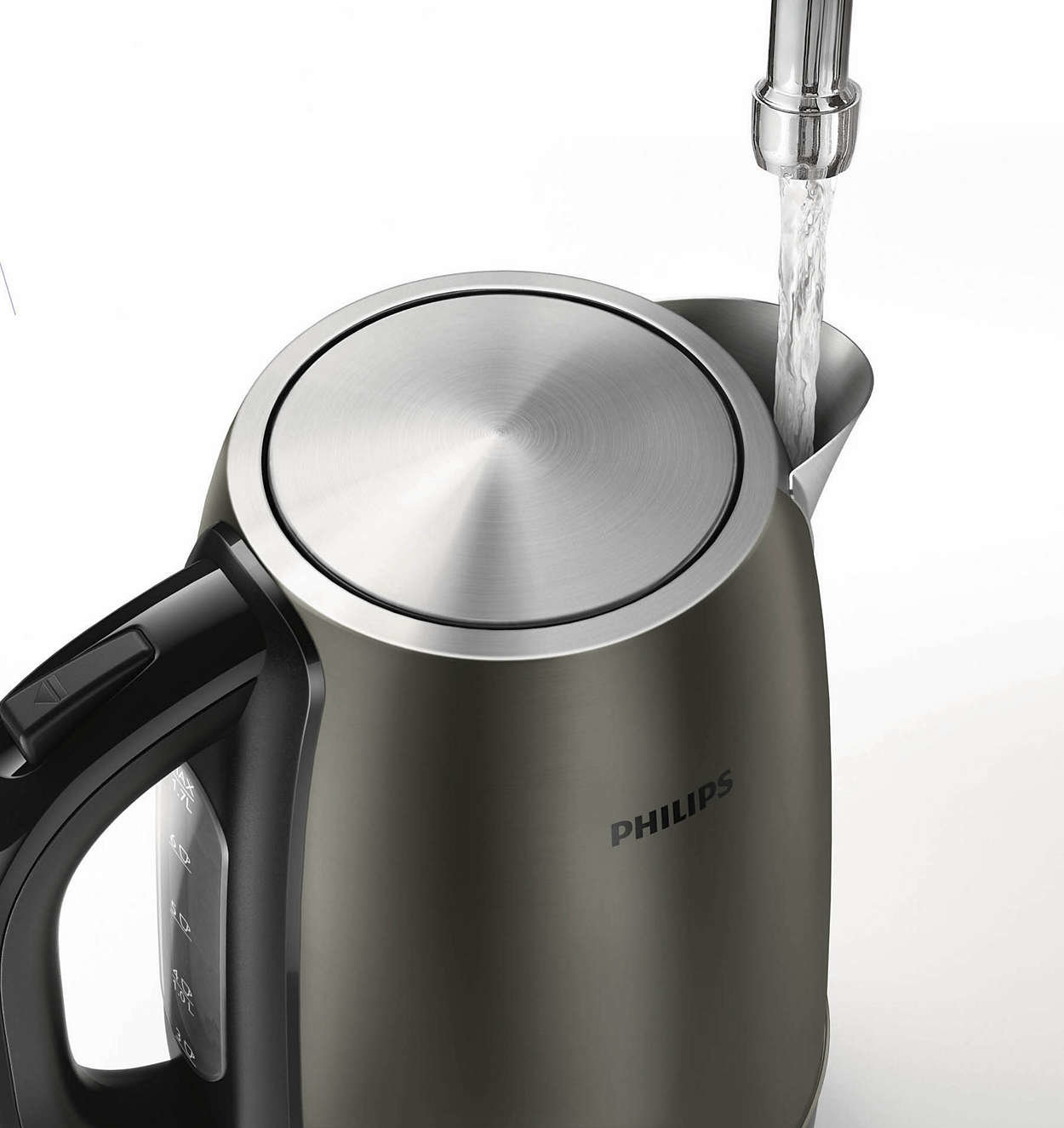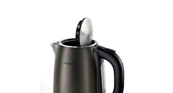 Łatwe napełnianie i przykrywanie Czajnik można napełnić po otwarciu uchylanej pokrywki lub przez dziobek. |