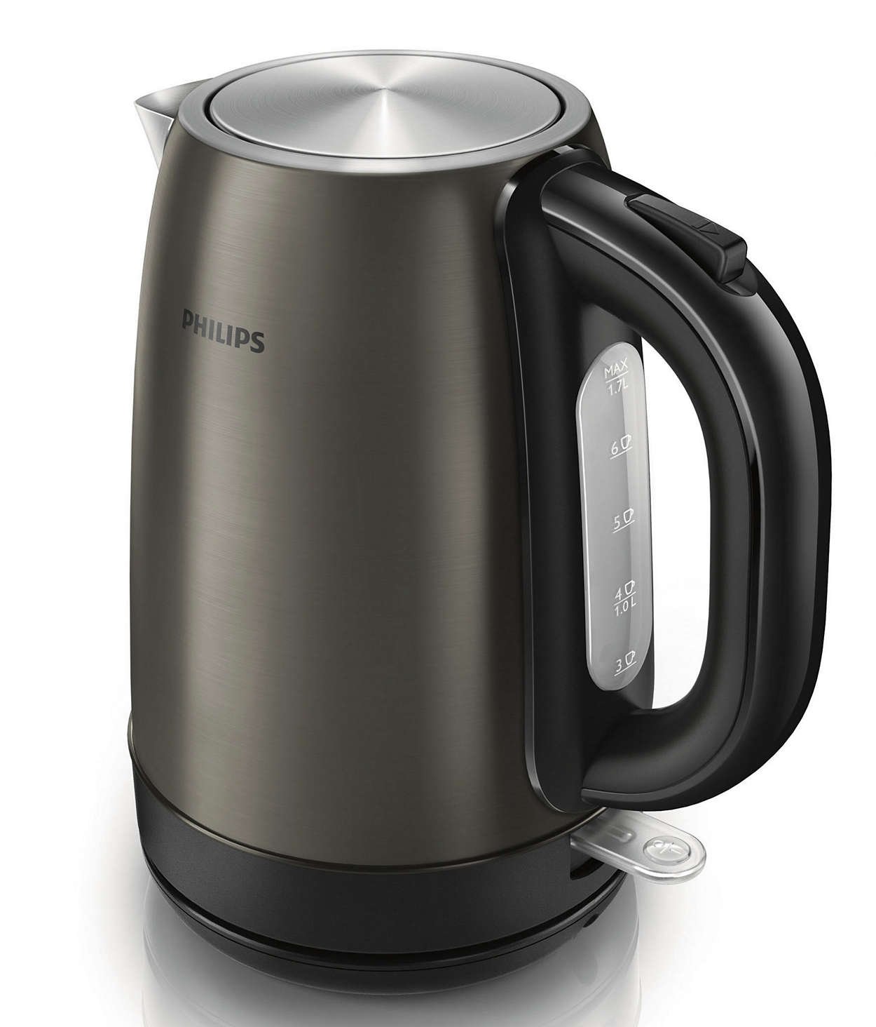 | Stworzony z myślą o trwałości! Wydajny czajnik z prostym w czyszczeniu elementem grzejnym -1,7 litra -2200 W -Metalowy, kolor tytanowy |